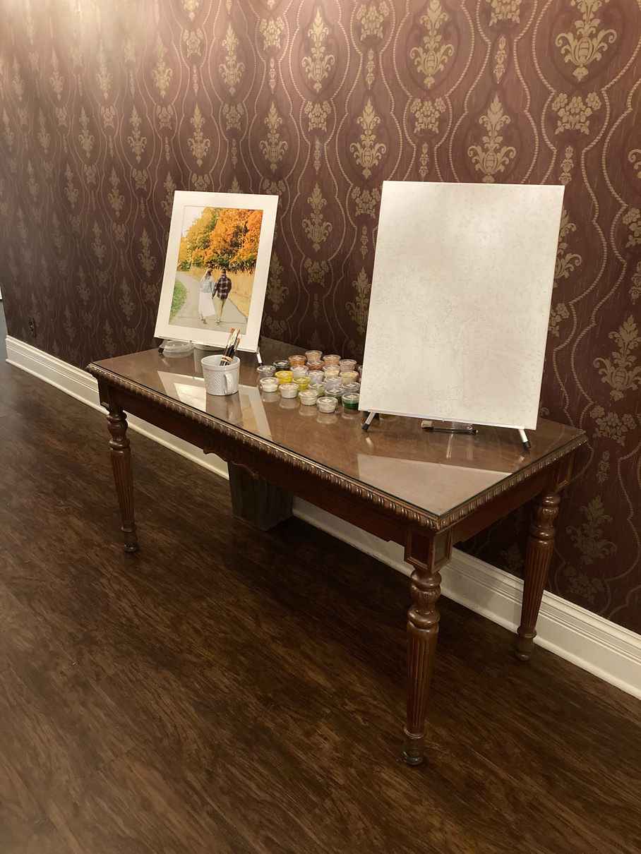 Using your photos, together we design a custom paint-by-number canvas for your event. We offer a variety of canvas sizes to fit the size and scope of your event and your budget.